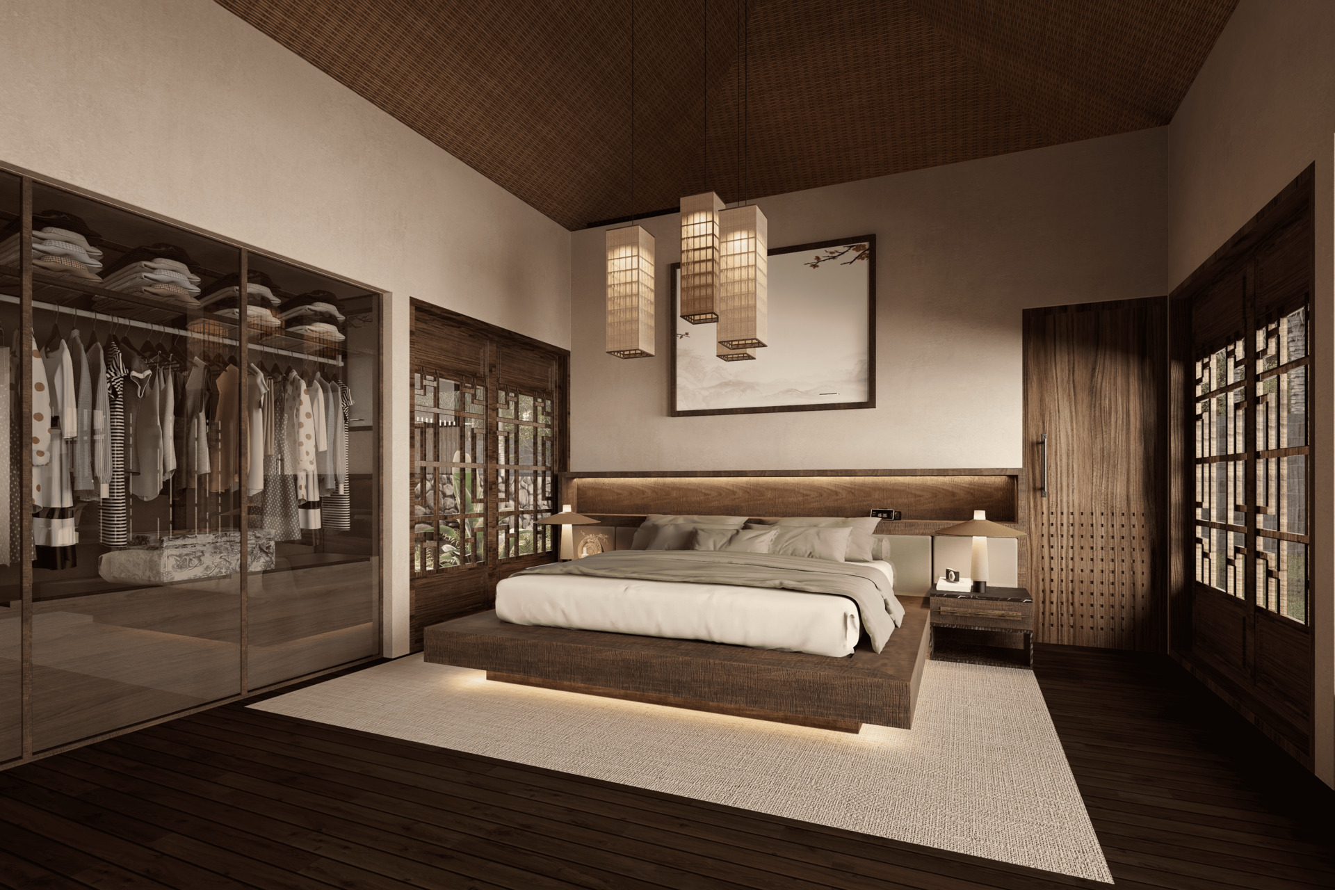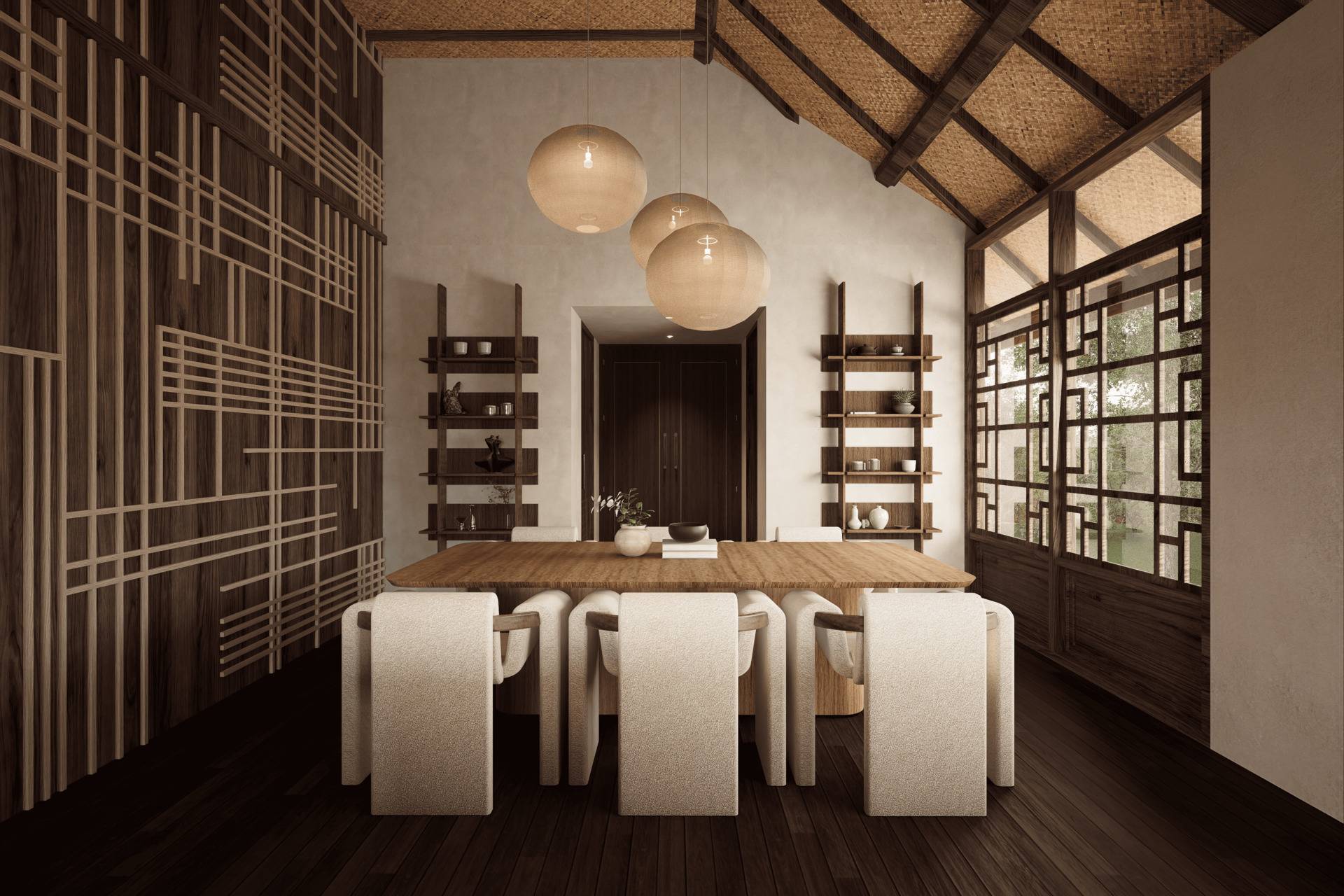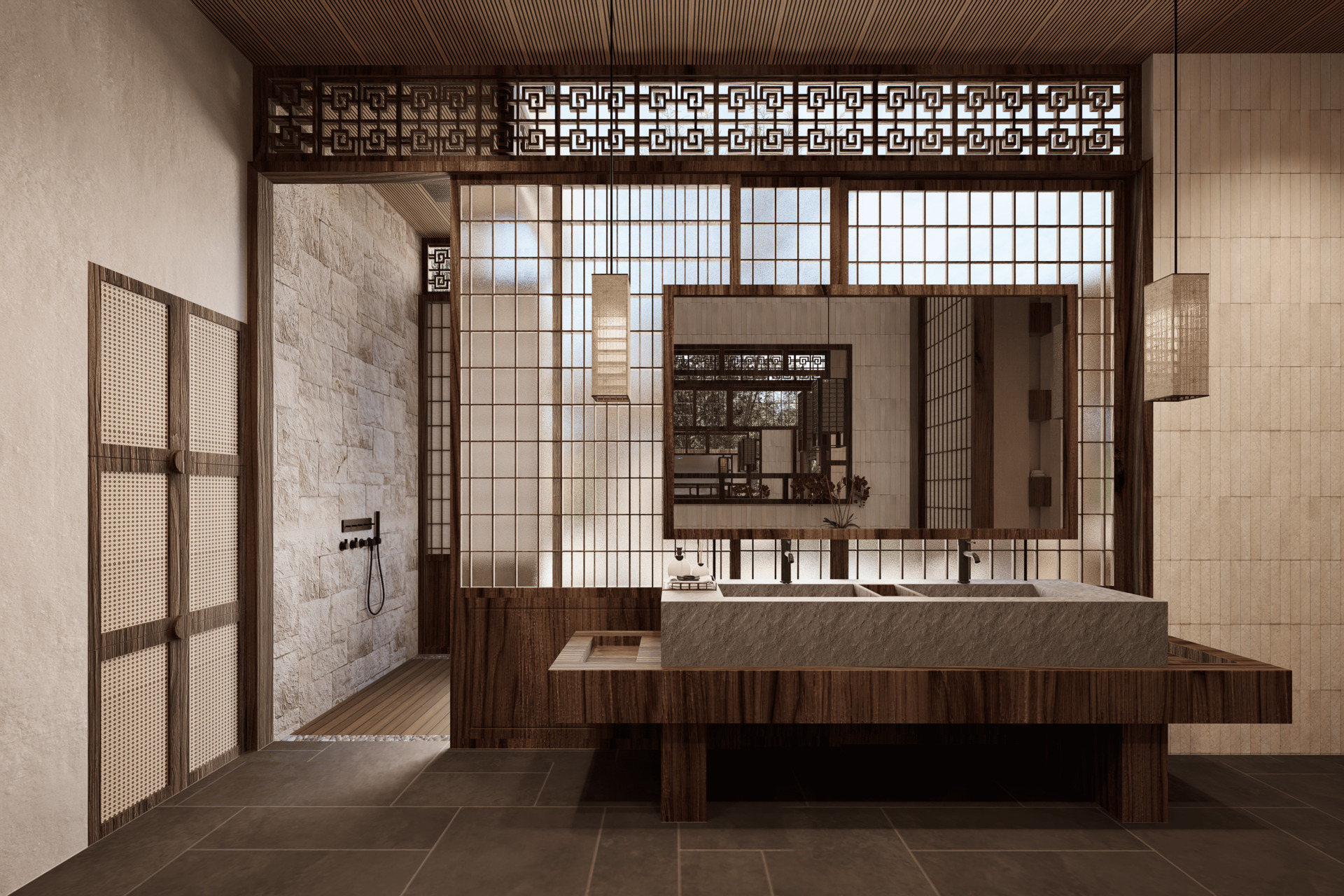 A Japan-inspired renovation on a 40-acre Ubud estate, transforming three existing structures into a serene wellness retreat. The main house gains an additional 200 m² upper floor with a soaring ceiling, while the gym, spa, and guest suite are reimagined to blend with nature. The result is a tranquil sanctuary filled with intimate, restorative spaces.