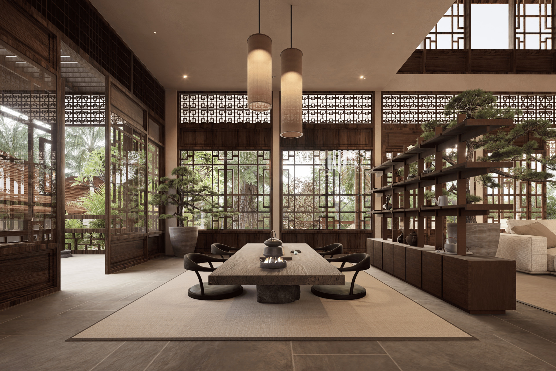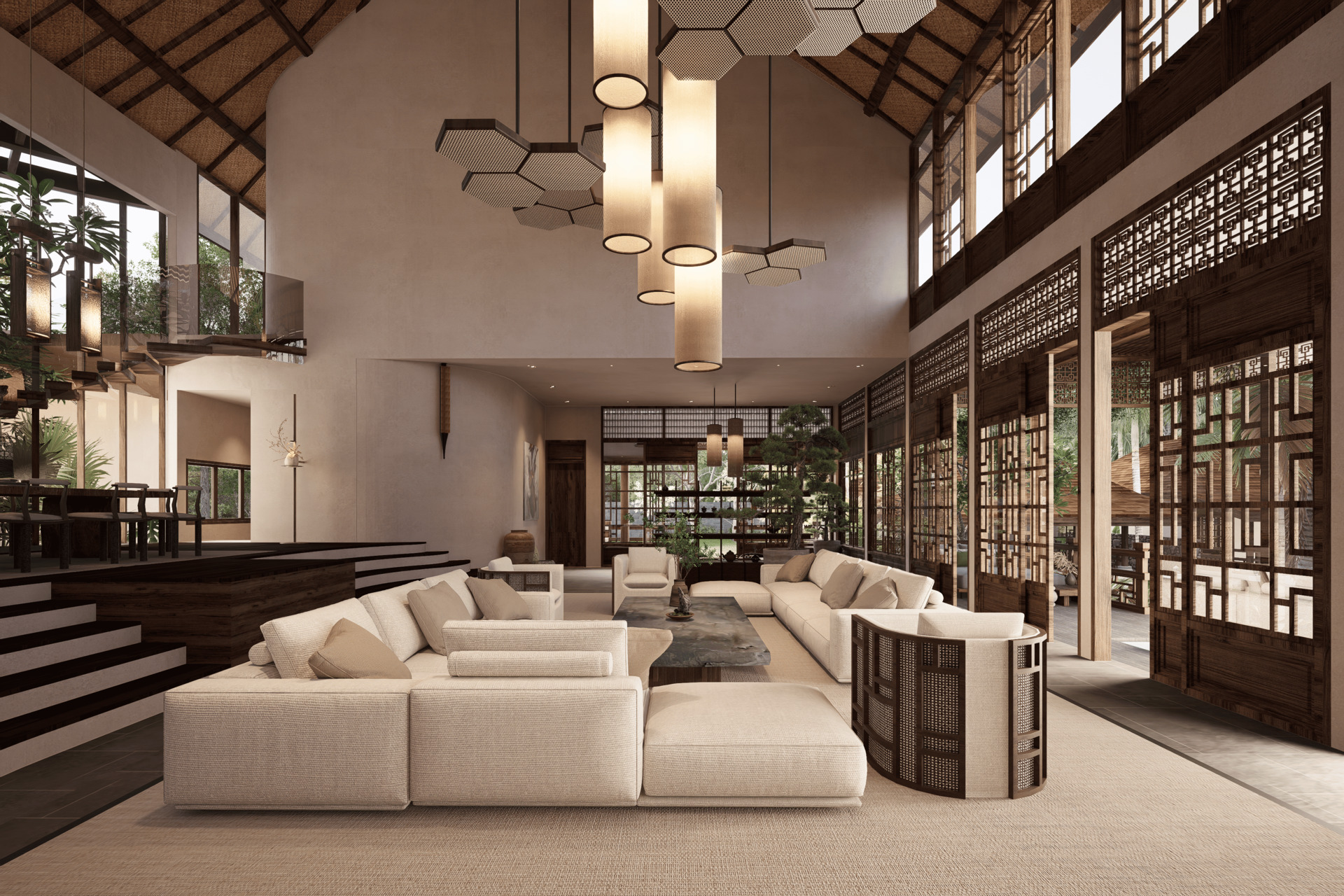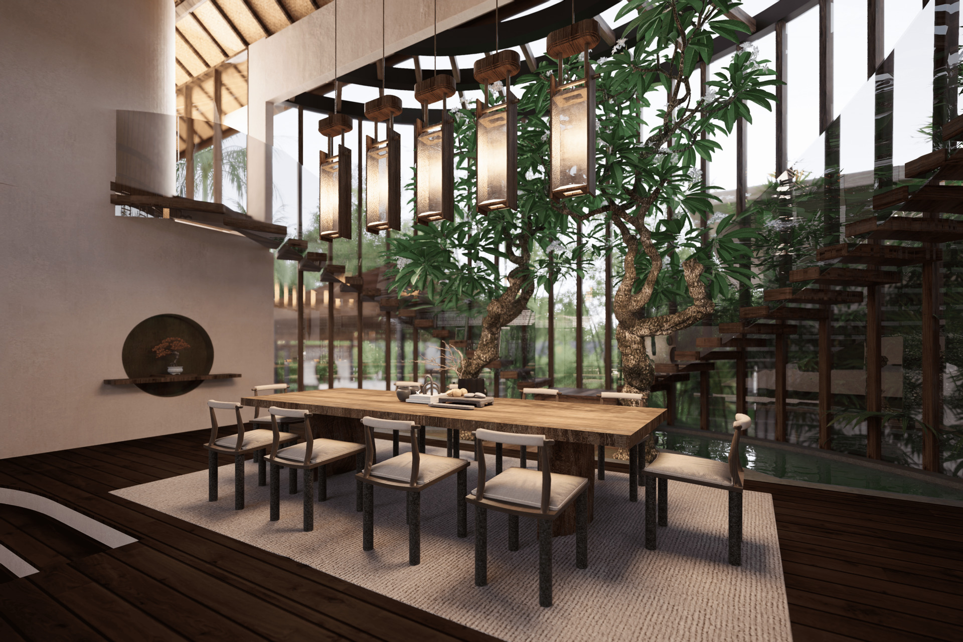 A Japan-inspired renovation on a 40-acre Ubud estate, transforming three existing structures into a serene wellness retreat. The main house gains an additional 200 m² upper floor with a soaring ceiling, while the gym, spa, and guest suite are reimagined to blend with nature. The result is a tranquil sanctuary filled with intimate, restorative spaces.