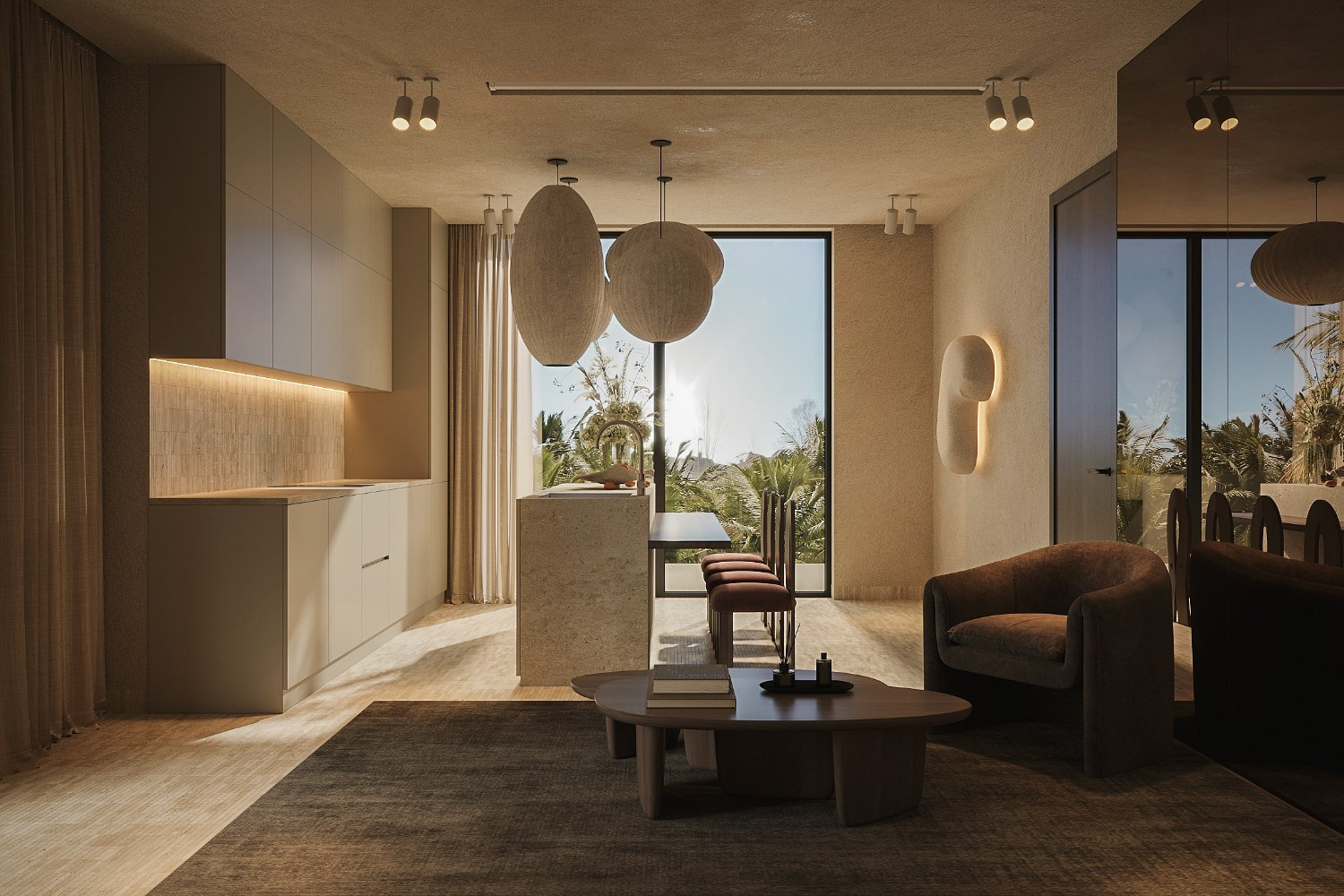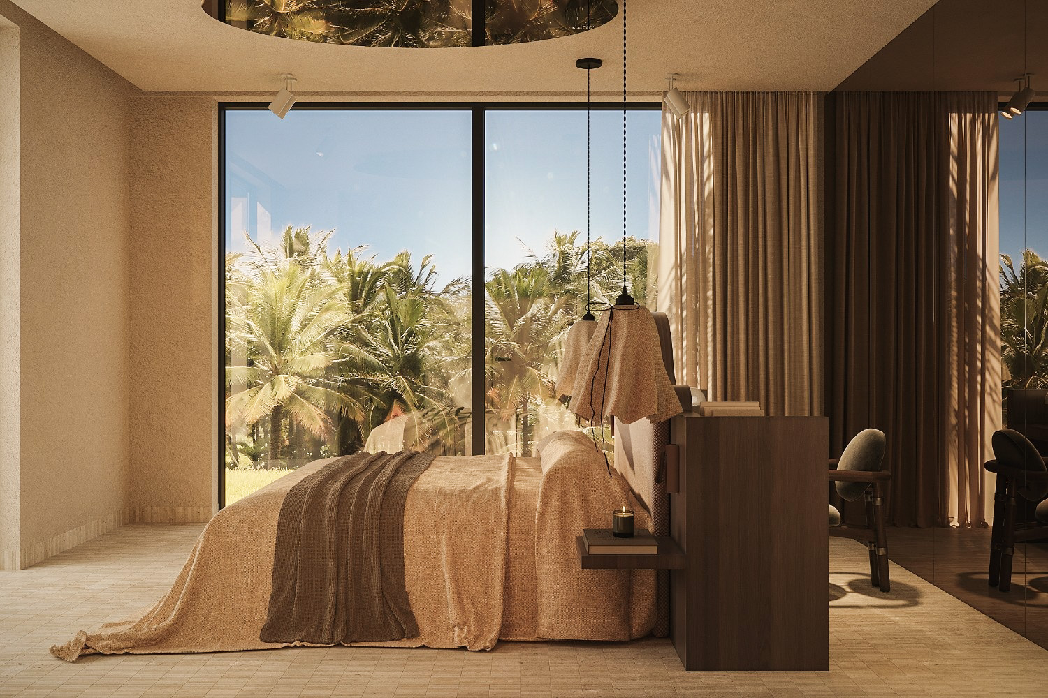 Positioned only three minutes from the ocean, the complex opens to panoramic views of Bali’s beauty—river, jungle, rice fields, and volcanoes. Its layout is crafted for comfort and functionality, offering fully furnished interiors, generous social spaces, and private terraces overlooking lush greenery. Every detail supports a lifestyle that feels luxurious, organic, and deeply peaceful.