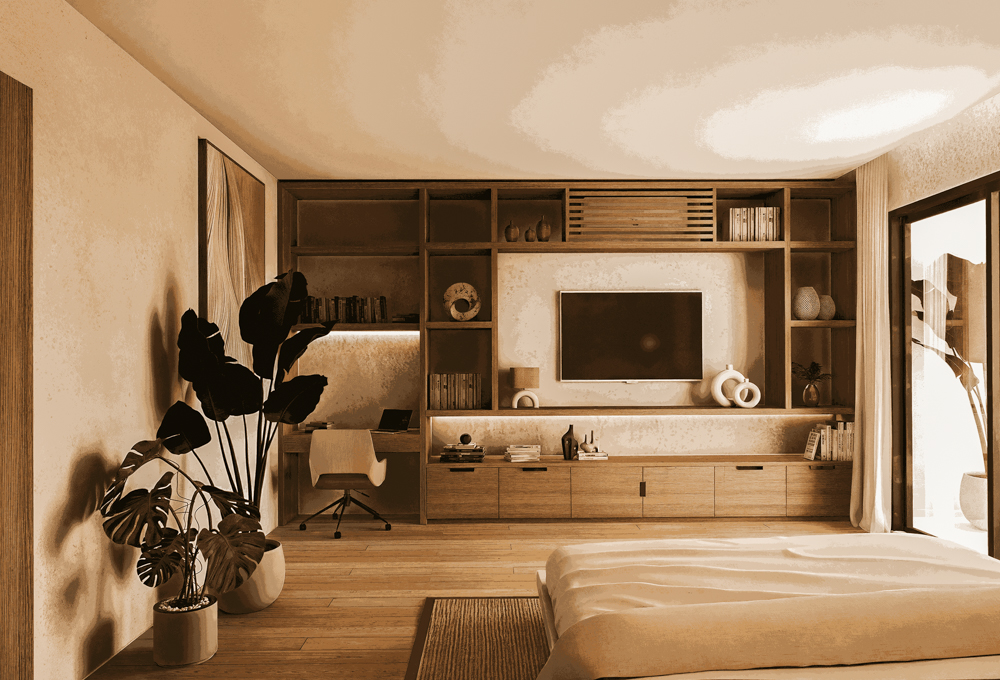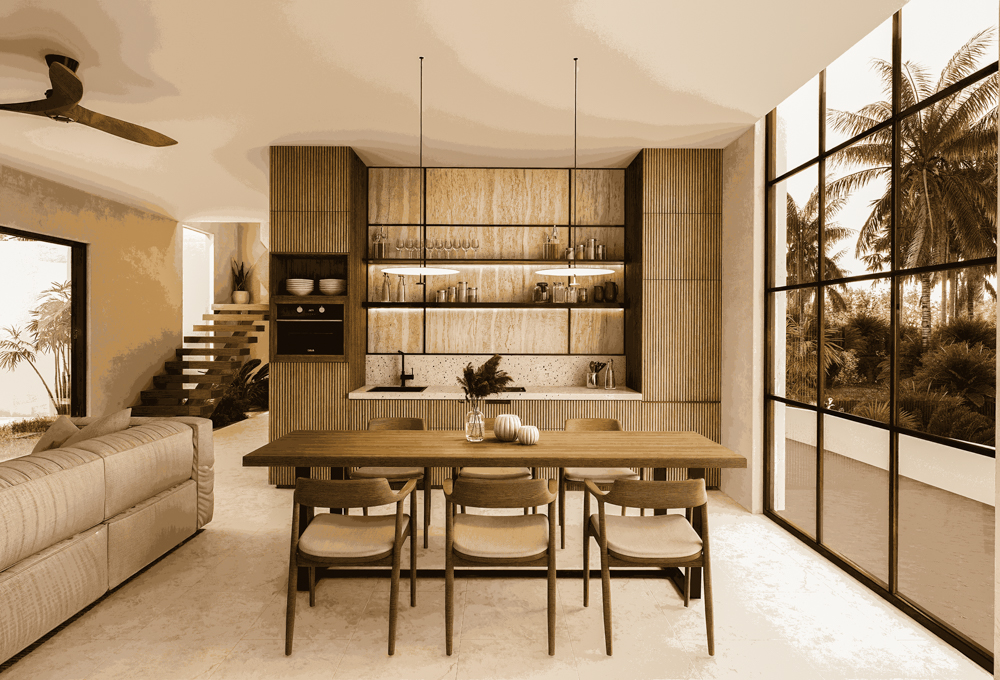 A modern three-storey Mediterranean townhouse with 3 bedrooms, private garden, and refined interior finishes. Designed for peaceful Berawa living. Delivery Q4 2025.