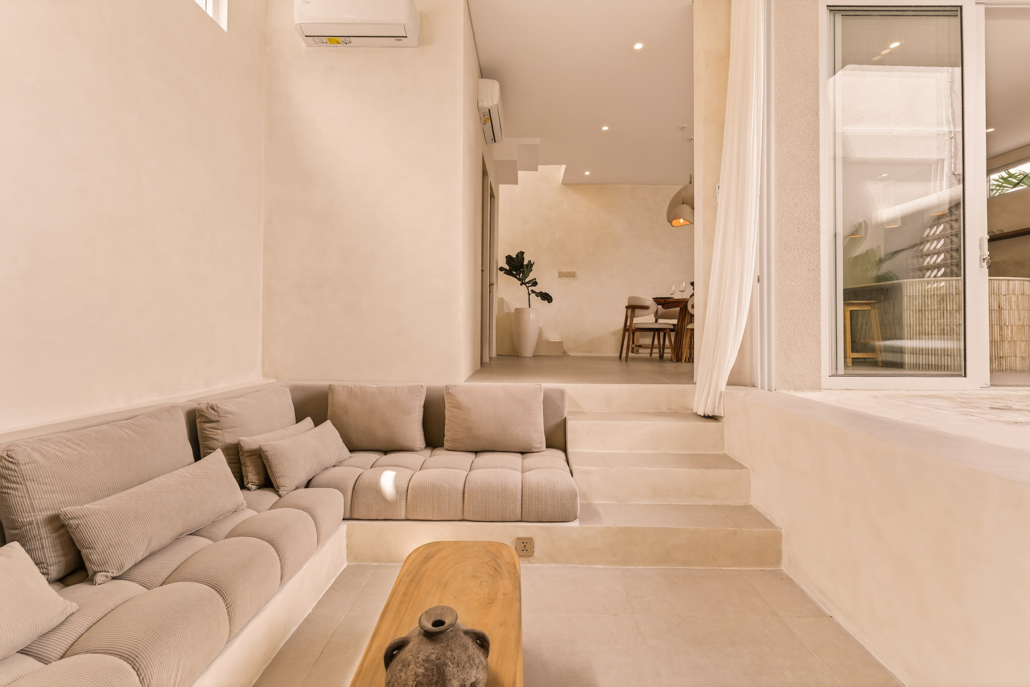 This upcoming residence spans 188 sqm across three floors, offering a serene blend of modern design and warm textures. The layout mirrors Unit 1: an enclosed sunken lounge, ground-floor swimming pool, fully equipped kitchen/dining space, two ensuite bedrooms upstairs, and a private rooftop equipped with plunge pool, seating, powder room, and laundry area.