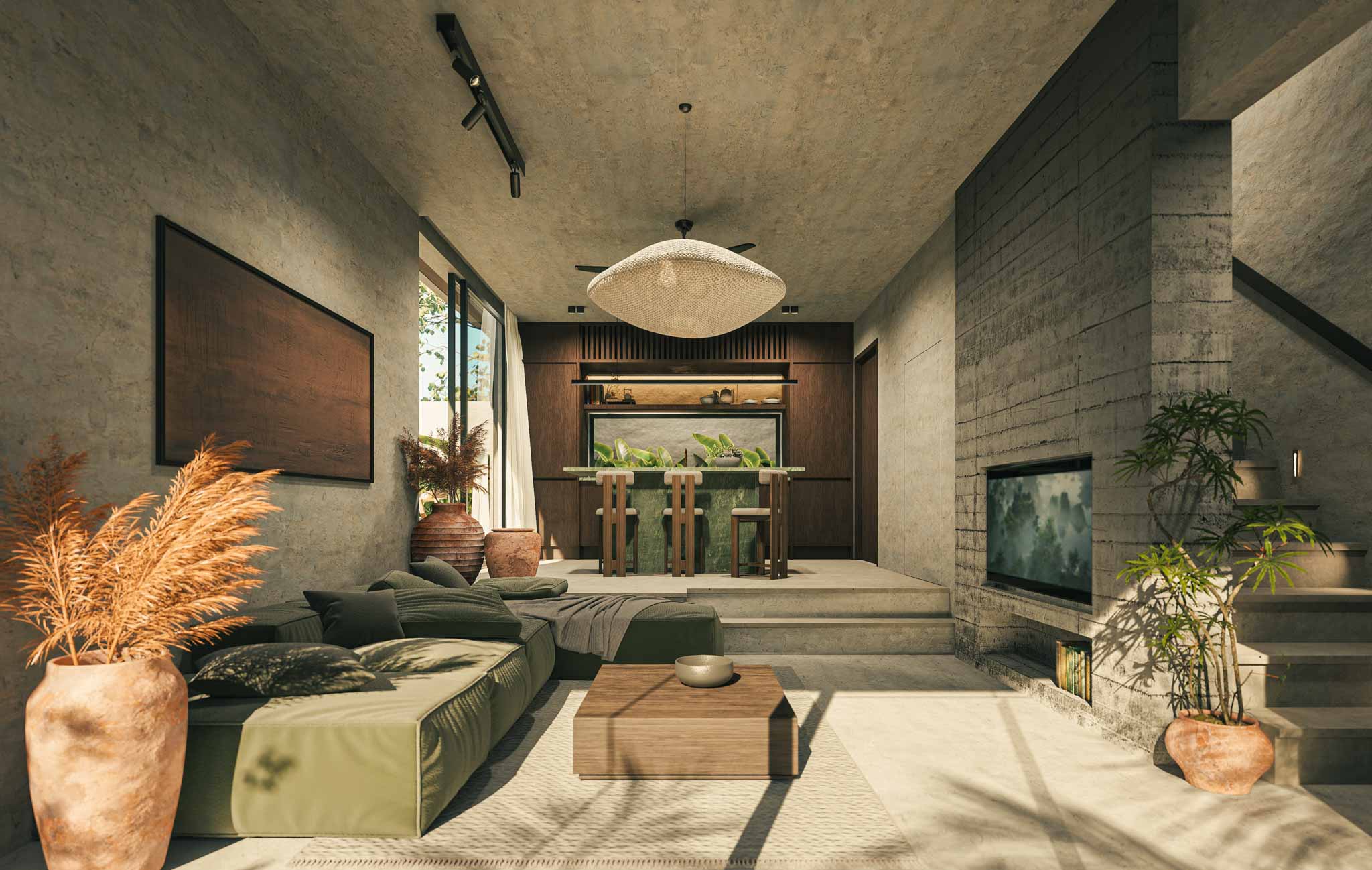 Located in Bingin, this one-bedroom villa is designed with tropical sensitivity and timeless materials. Raw concrete and stone are balanced with timber and greenery to create a calm, grounded atmosphere. Green roof terraces and shaded outdoor areas enhance comfort and privacy.