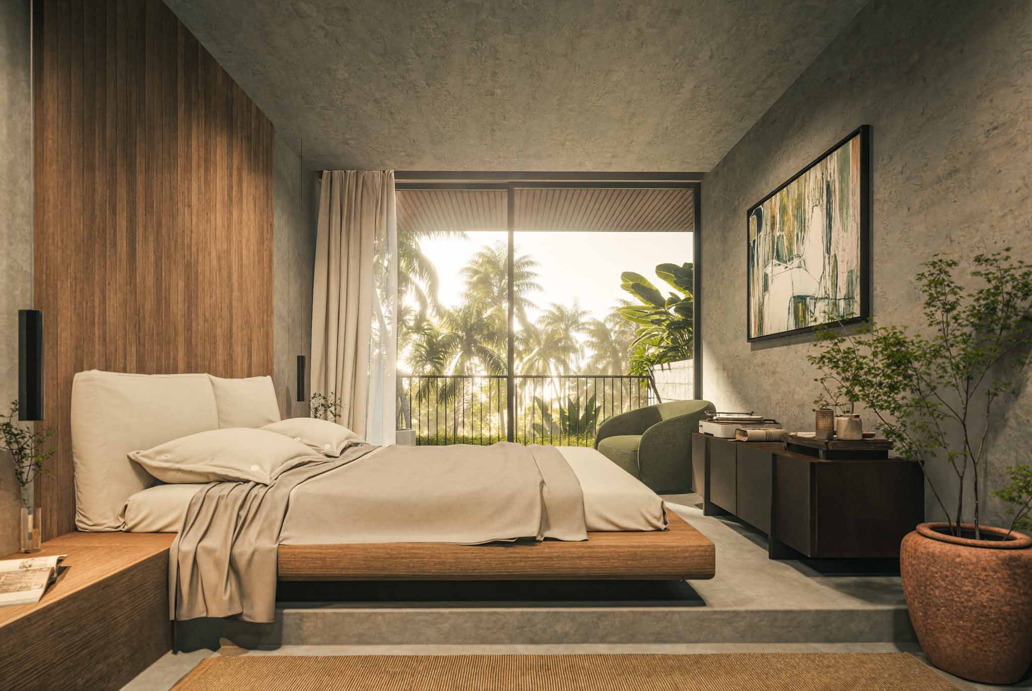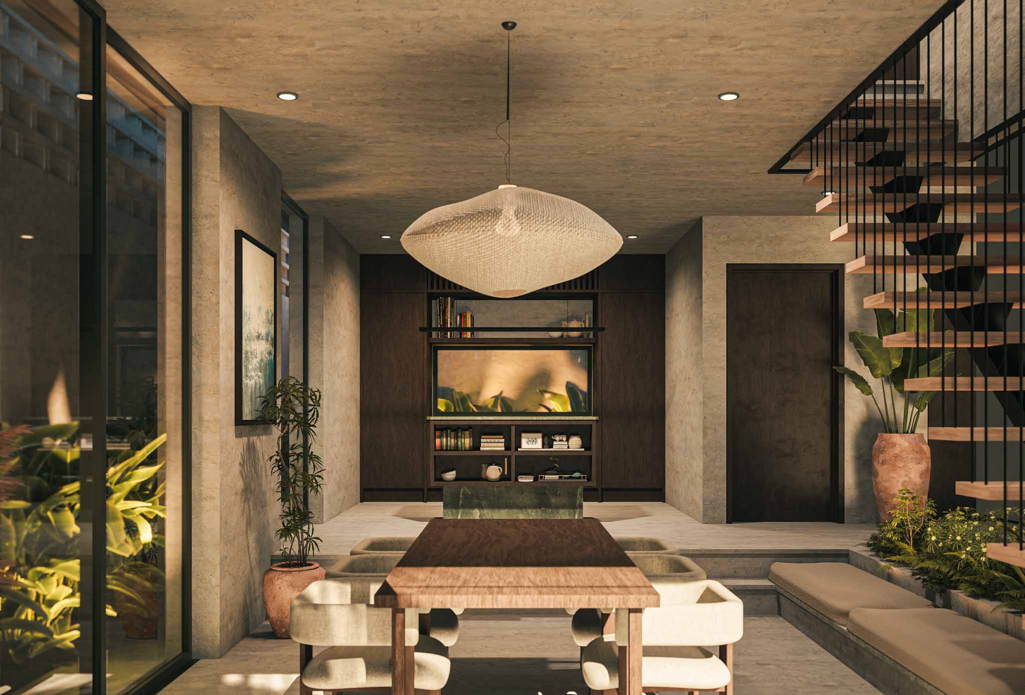 The open-plan kitchen and living area enhances functionality and livability. Durable materials and timeless design ensure lasting appeal for both private use and investment. The villa offers a balance of strength, stillness, and modern tropical style.