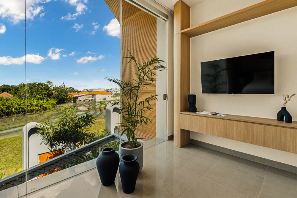 Upstairs, two bedrooms with dedicated bathrooms offer privacy, while the rooftop expands your living experience with fresh air and skyline views. With 142 m² of building space and a 7.7 kW electrical capacity, this home is built for both practicality and pleasure—ideal for modern living in Bali.