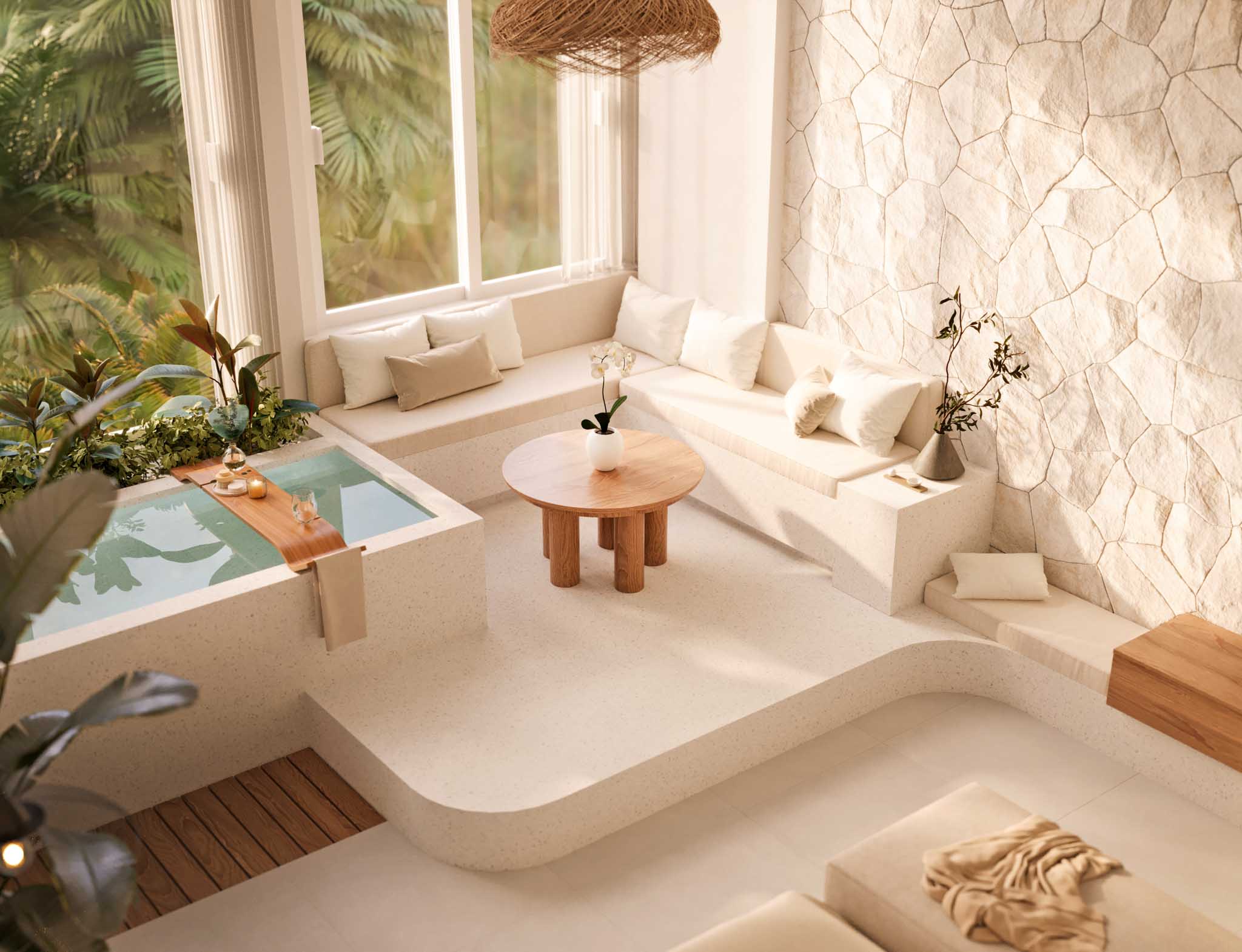 The project offers sunset-facing ocean views with no future construction risk in front of the site. A rooftop bar and landscaped garden lounge elevate the living experience. Leasehold terms begin after completion, providing long-term security and flexibility.
