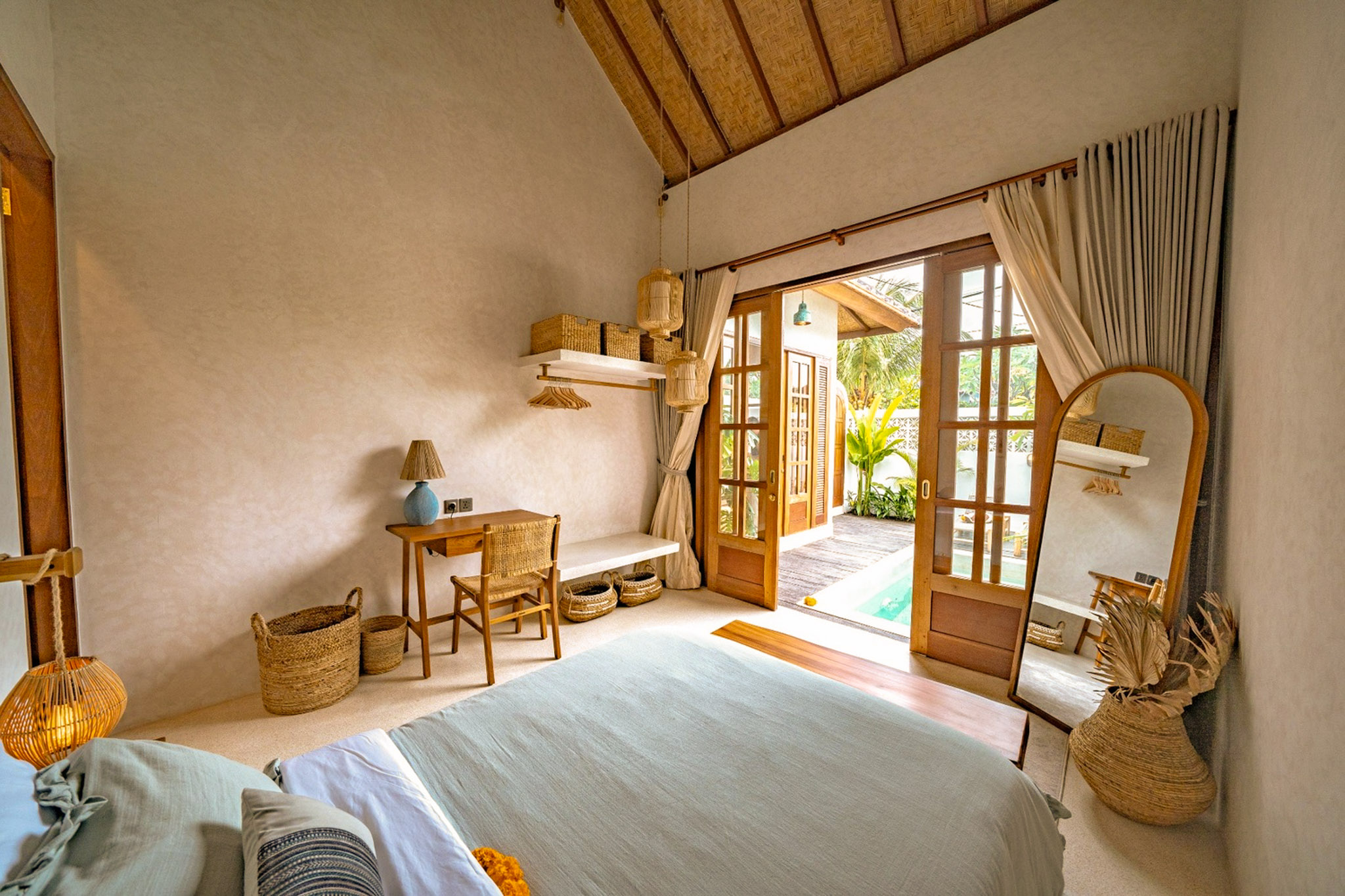 This thoughtfully crafted villa features warm tones, rattan textures, and a bright indoor–outdoor layout ideal for Bali’s tropical lifestyle. The living space flows seamlessly to a private pool, terrace, and small garden. Every corner is designed for comfort, easy maintenance, and relaxed island living.